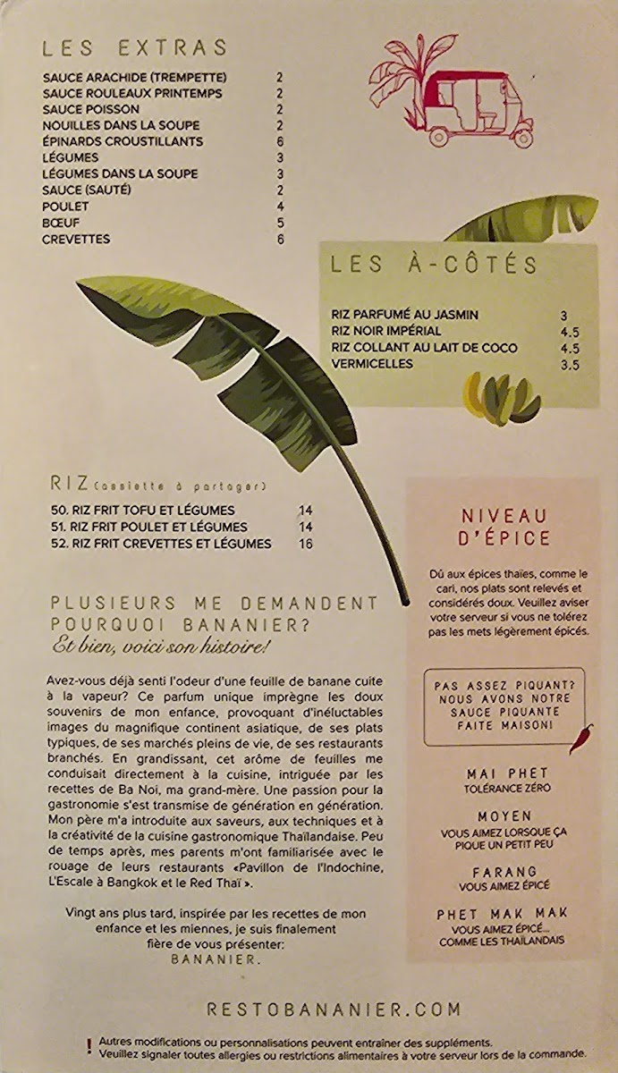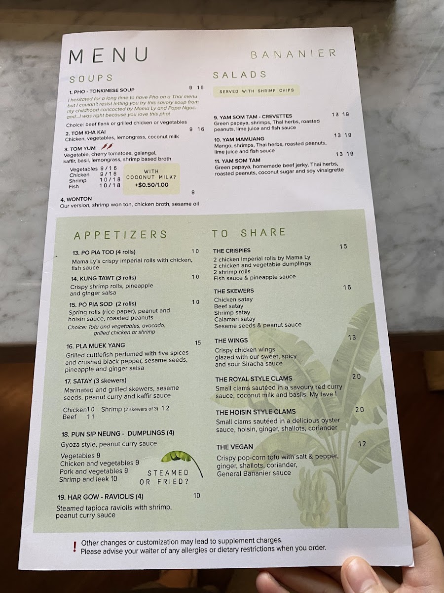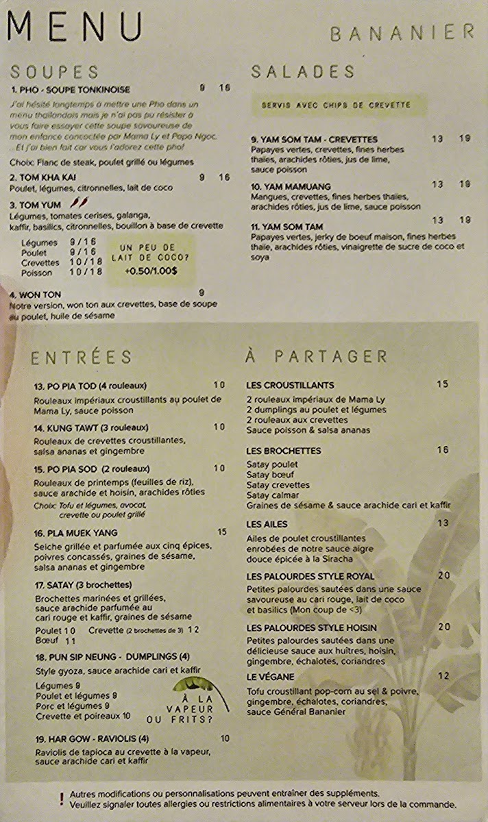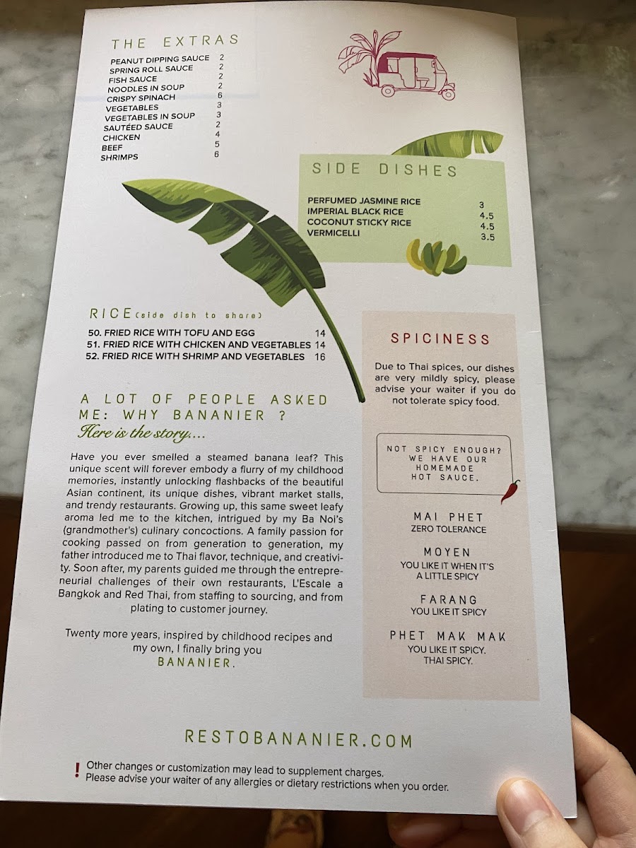 Welcome to Bananier, a vibrant Thai restaurant nestled in the heart of Verdun, Quebec. As you step into this culinary gem at 8 Pl. du Commerce #100, you are instantly enveloped in a warm ambiance that is perfect for both intimate dinners and lively gatherings with friends.