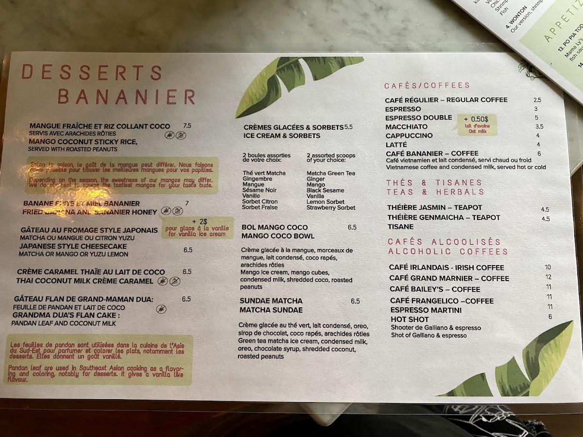 Not to be missed, the desserts at Bananier are a delightful end to your meal. The Mango Coconut Sticky Rice combines fresh, juicy mango with creamy coconut rice, creating a perfect marriage of textures and flavors. Alternatively, the Japanese Style Cheesecake offers a light, airy finish that balances the spices of your preceding dishes.